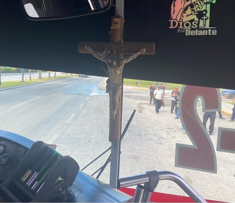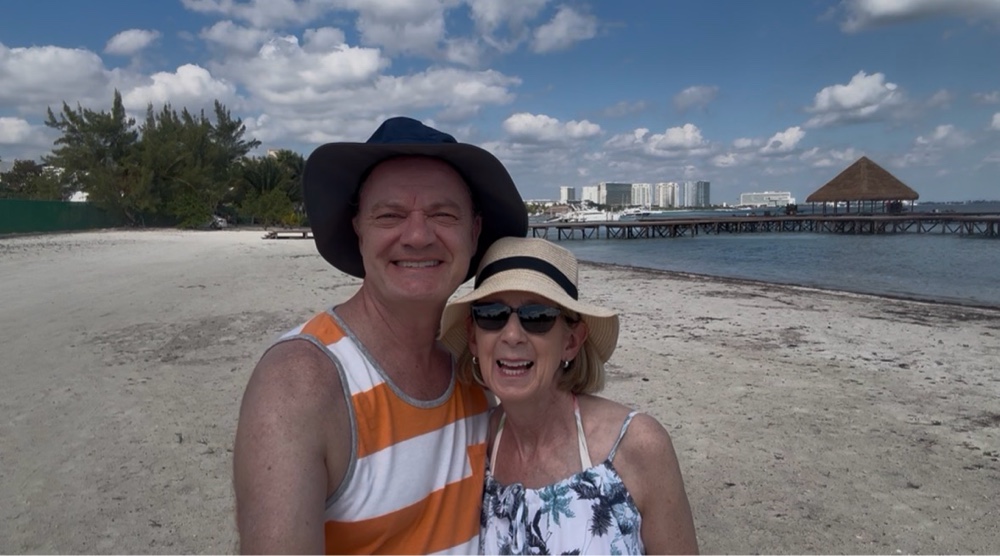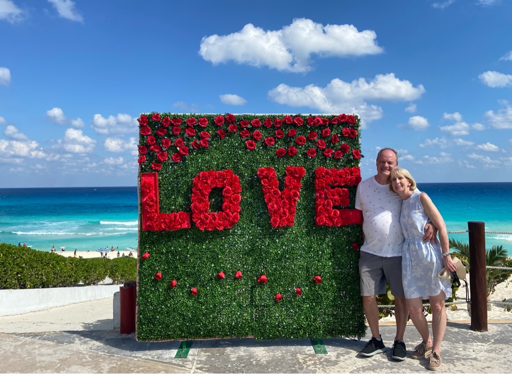 Across from El Rey, we found an incredible public beach with extensive white sand and iconic Caribbean turquoise water. We decided to go back there tomorrow. For now, this Valentine’s pop-up display provided the backdrop for a photo appropriate to the day.
