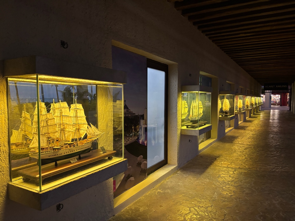 Near the embarkation point for the ferry to Isla Mujeres, there are 12 incredibly detailed models of tall ships, showing the evolution of tall ship sailing technology and desgn, from 1628 to 1981.