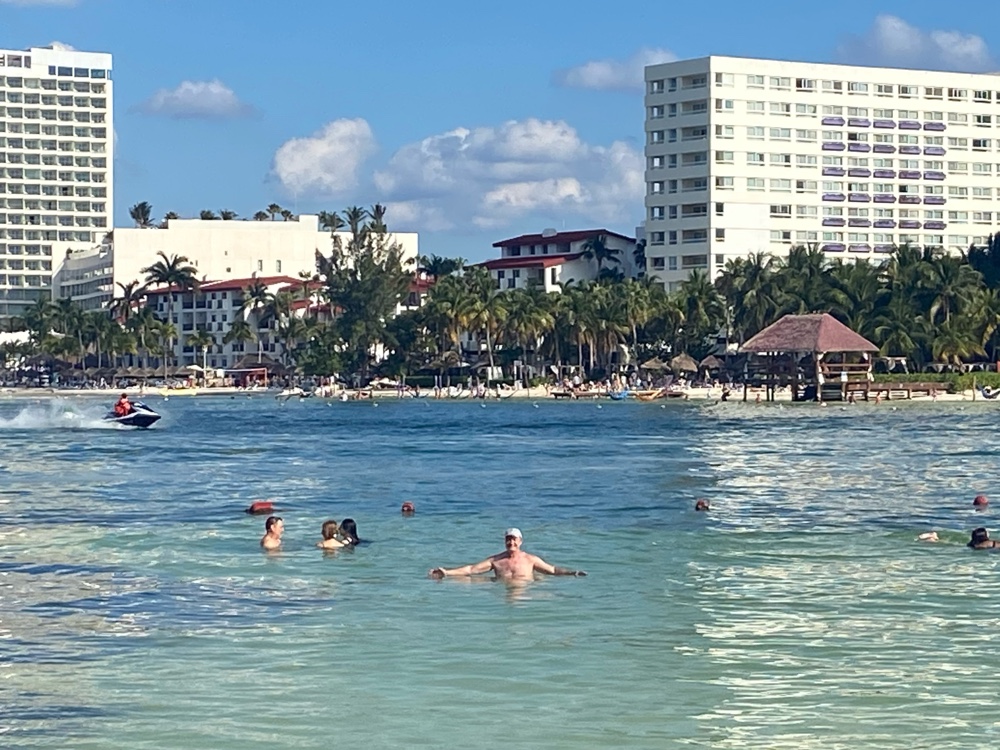 Back at the resort, David did an afternoon swim, near the point where the Nichupte Lagoon opens into the ocean. The water was pretty cold. And it was important to be very wary of crocodiles!