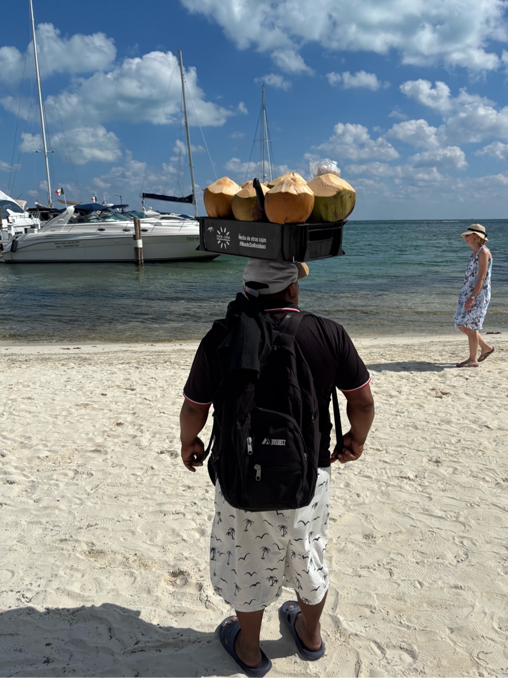 We passed this guy on our walk. He had no problem balancing a tray of coconut drinks on his head!