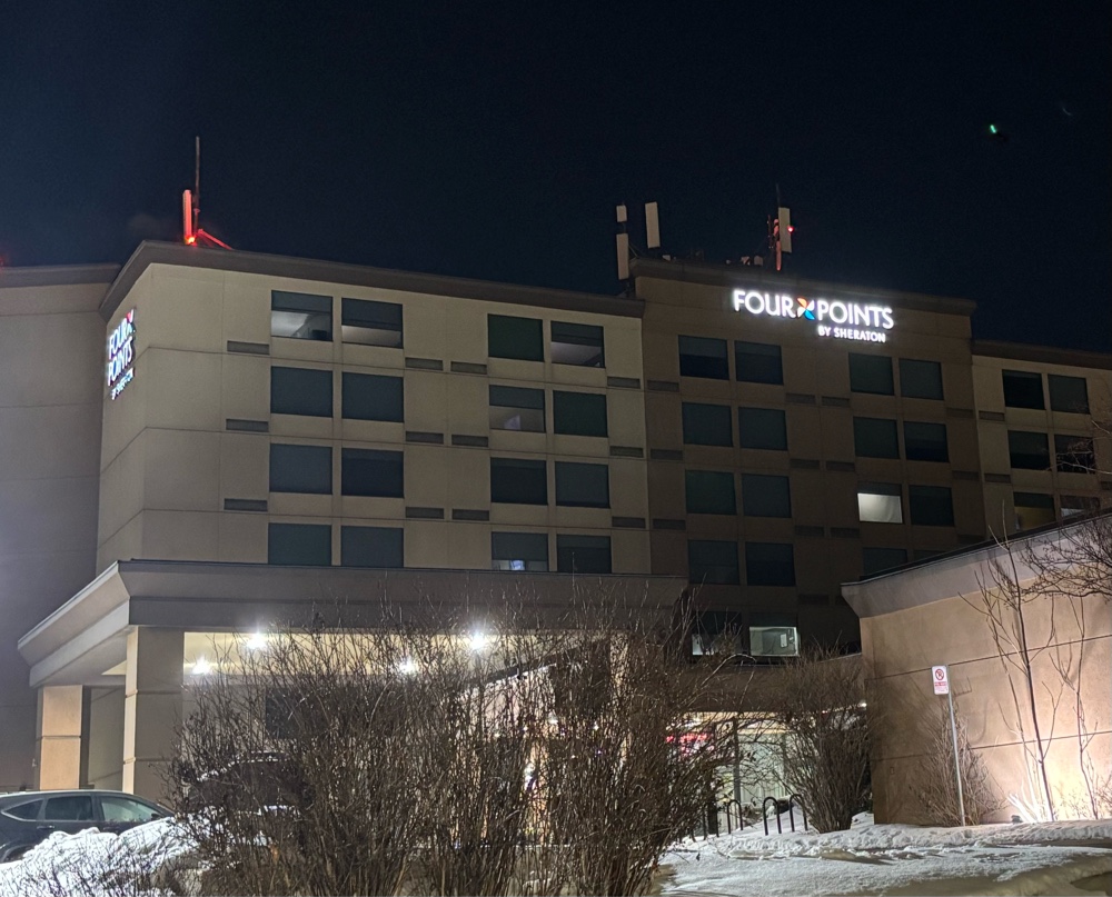 We walked from Pearson Terminal 3 to the Four Points by Sheraton Hotel in -10C temperatures. After a short three-hour sleep, we walked back to the terminal at 4AM.