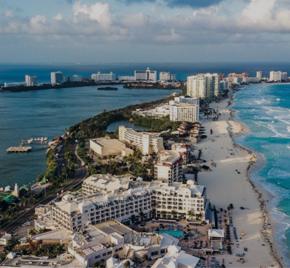 This stretch of land is the predominant reason for Cancún's fame as a resort hub and tourist destination, and a majority of Cancún's income comes from tourism. Ground was broken for The Strip on January 23, 1970, and it is 22.5km in length. There are over 190 hotels in the Hotel Zone and over 35,000 hotel rooms-